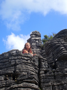 The next day we had breakfast and we went to the pancake rocks and blowholes. It was very cool! The biggest one gave me a shower. The smallest one had a bridge to it, me, my brother and my mom already crossed but my dad not yet. The blowhole exploded when he was standing right to it and my dad got a bit wet. It was so funny! The next thing was a whirlpool with a cave that looked like a keyhole, the waves were crazy. Then we went to do a little walk in nature. The next thing we did that day was going to a cave. We all brought lights, except my mom, which we all laughed about because she needed someone to help or she was in pitch dark. Me and my dad climbed up a wall and discovered another part of the cave. My brother wanted to join us so my dad helped him up, I climbed up and just managed, so my brother couldn't do it.